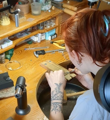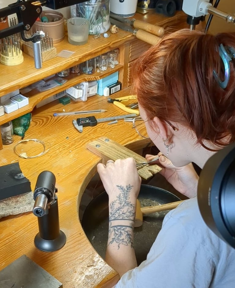 Moi c'est Solène ! Depuis mon enfance, j'ai toujours été passionnée par la création en général. De la maquette jusqu'à la couture en passant par la bijouterie ! J'aime transformer des idées vagues en réalisations palpables. Chaque nouveau projet est une aventure, une exploration et un moyen d'inspirer les autres à rêver et à créer à leur tour. Cette passion m'accompagne au quotidien, et m'a menée à mes deux CAP : Bijouterie et Sertissage ! La bijouterie est un domaine que j'apprécie particulièrement parce qu'elle a le pouvoir d'embellir les gens et de créer des objets uniques qui ont une signification particulière. Chaque bijou raconte une histoire et reflète la personnalité de celui qui le porte. Ils deviennent des souvenirs précieux, chargés d'émotions et de sentiments. Ils peuvent symboliser des moments importants de la vie, tels que des anniversaires, des mariages, des naissances ou des amitiés. À travers la bijouterie, j'ai trouvé un moyen d'exprimer ma créativité tout en offrant aux autres des trésors qui les accompagnent au quotidien.